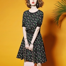 2017春夏新款中袖打底收腰印花连衣裙中长款名媛气质a型碎花裙女
