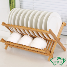 竹可心碗架碗架双层沥水碗碟架厨房置物架收纳晾放碗盘用品架竹制