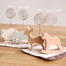 新款木质动物留言夹4款 原木铁艺便签夹/名片夹/相片夹