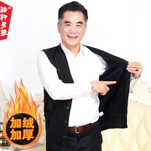 中年男士针织开衫加绒加厚无袖坎肩背心毛衣中老年爸爸装外套马甲