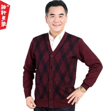 中老年人男装毛衣开衫外套中年爸爸装父亲装V领针织衫老人春秋款