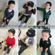 特价 韩版宝宝男童女童纯棉糖果色圆领V领针织开衫儿童百搭针织衫