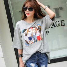 2017春夏欧美印花纯棉半袖中长款宽松T恤女装大码胖妹妹中袖上衣