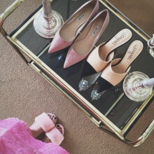 Forevercan秋新品 意大利 髙街百搭 闪粉 尖头真皮大底 高跟鞋