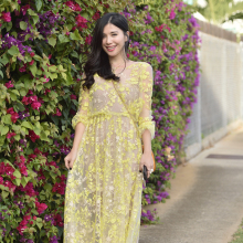 Forevercan2016春季新品小黄花 重磅刺绣蕾丝小洋裙名媛风连衣裙