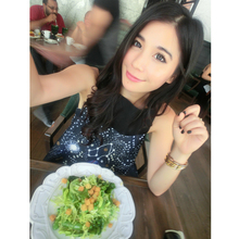 Forevercan夏新品 星空系列 高端重磅手工钉珠 拼接无袖连衣裙女