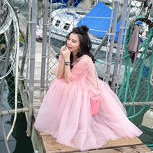 Forevercan春新品 欧美风 超仙粉纱裙 打揽袖设计 网纱蓬蓬仙女裙