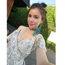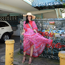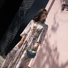 Forevercan夏新品 法国小名媛 真丝印花 大摆飘逸长裙 度假连衣裙