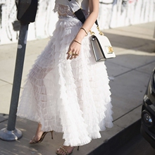 Forevercan2017春新品 黑白色蕾丝网纱蛋糕裙 宫廷风大摆半身裙女