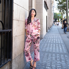 Forevercan夏新品 法国风 水墨画 花朵印花 超柔质感 真丝休闲裤