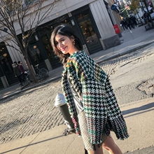 Forevercan2017新品 欧美风 高密羊毛混纺格 斗篷型 名媛小外套
