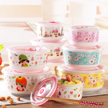 名流保鲜盒碗饭盒微波炉便当盒冰箱水果密封盒子圆形陶瓷3件套装