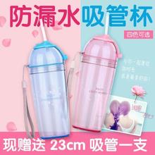 韩国透明成人吸管杯随行杯柠檬果汁密封防漏挂绳学生带盖冷饮杯