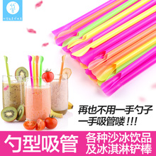 艺术吸管100支彩色环保夏季儿童宝宝可用沙冰饮品勺型吸管10包邮