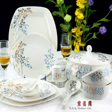 方摇钱餐具套装56头骨瓷碗碟景德镇陶瓷器韩式碗具盘子乔迁送礼品