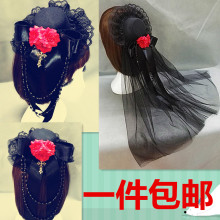 包邮lolita搞死gothic玫瑰发箍kc蕾丝纱发饰哥特吸血礼帽晚宴头纱