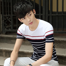 条纹夏天男士短袖t恤纯棉圆领夏季修身打底衫半袖男装丝光棉衣服