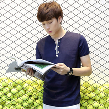 夏天有领纯棉亚麻t恤男士短袖潮流个性修身中国风体恤男装半截袖