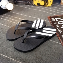 防臭夏季新款沙滩拖鞋男士韩版潮拖学生人字拖黑色条纹男拖