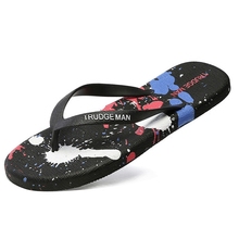 春夏新款人字拖鞋男士休闲潮拖韩版黑色夹趾沙滩防滑凉拖居家喷墨