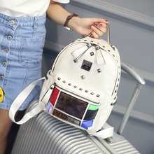 2017韩版铆钉双肩包时尚印花小背包学院风女学生书包简约百搭潮包