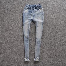 童装女童牛仔裤春秋款2017小脚裤韩版百搭新款儿童裤子修身破洞潮