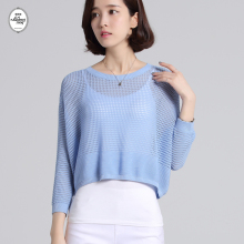 2016春秋韩版短款宽松针织衫女套头镂空薄款罩衫秋季蝙蝠衫薄毛衣