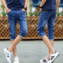 夏天新款七分牛仔裤修身韩版青少年短裤青春流行中学生潮男马裤子