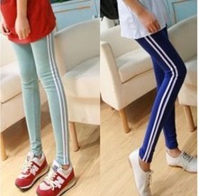 • 包邮2015春秋侧边压线打底裤竖条纹修身九分裤潮女运动小脚裤