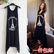 • 夏韩版新款烫金印花连衣裙抽绳莫代尔长裙收腰显瘦宽松长款背心裙