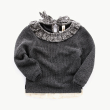 女童荷叶领蕾丝针织衫 2016新款秋装韩版童装 宝宝儿童毛衣G1517