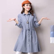 孕妇装孕妇连衣裙夏季上衣衬衫裙时尚中长款条纹宽松春装打底衬衣