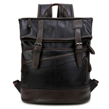 轻骑者复古商务双肩包男士休闲背包旅行包学生包韩版背包皮质书包