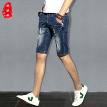 协协乐新款男士牛仔短裤夏季薄款修身直筒五分裤男夏天破洞中裤