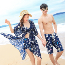 情侣泳女衣裙式比基尼三件套性感保守罩衫修身遮肚男沙滩裤情侣装