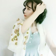 空调披肩长款夏季桑蚕丝丝巾女士真丝羊毛防晒刺绣围巾纱巾春秋季