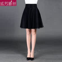 网纱半身裙2016春夏新款黑色纱裙高腰韩版显瘦百褶裙a字裙伞裙