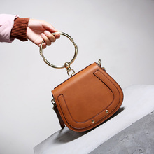 2017春夏新款磨砂皮小包包欧美大牌时尚faye圆环包单肩斜挎小方包
