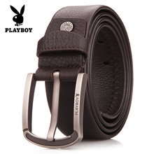 PLAYBOY花花公子男士针扣真皮皮带头层牛皮腰带 商务休闲 正品