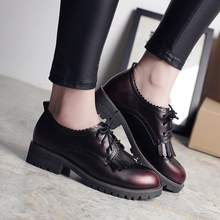 2016春秋布洛克英伦风流苏女鞋粗跟中跟学院风漆皮系带牛津鞋女潮