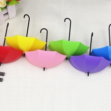雨伞造型墙壁粘胶免钉挂钩3个装 小物单挂勾 创意粘钩 钥匙挂钩