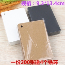 圆角牛皮纸黑白空白小卡片留言卡英语单词卡片200张打孔9.3*13.4