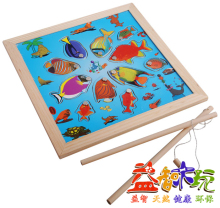儿童钓鱼玩具磁性 木质制小猫钓鱼拼图套装 宝宝益智玩具1-2-3岁