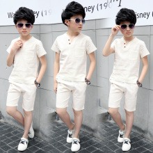 童装男童夏装11-13周岁两件套棉麻套装儿童短袖t恤12大15男孩夏季