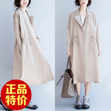 2017春装新款 文艺宽松纯棉花纹中长款外套 大码女装休闲开衫大衣