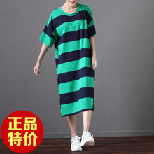 小茵家/2017夏季新品简约舒适纯棉经典中长款休闲条纹T恤连衣裙女