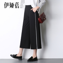 伊娅蓓2017春夏新款阔腿裤女九分裤大码高腰显瘦黑色宽松阔脚裤