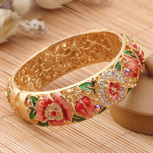 景泰蓝手镯女镀金镯子玫瑰花水晶民族风表白手饰品送女友生日礼物