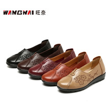 脚宽妈妈鞋单鞋中老年女鞋平跟圆头休闲皮鞋平底老人软底大码单鞋