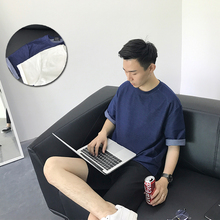 方寸先生夏17新款男生日系针织拼接净色质感宽松落肩肩男短袖T恤